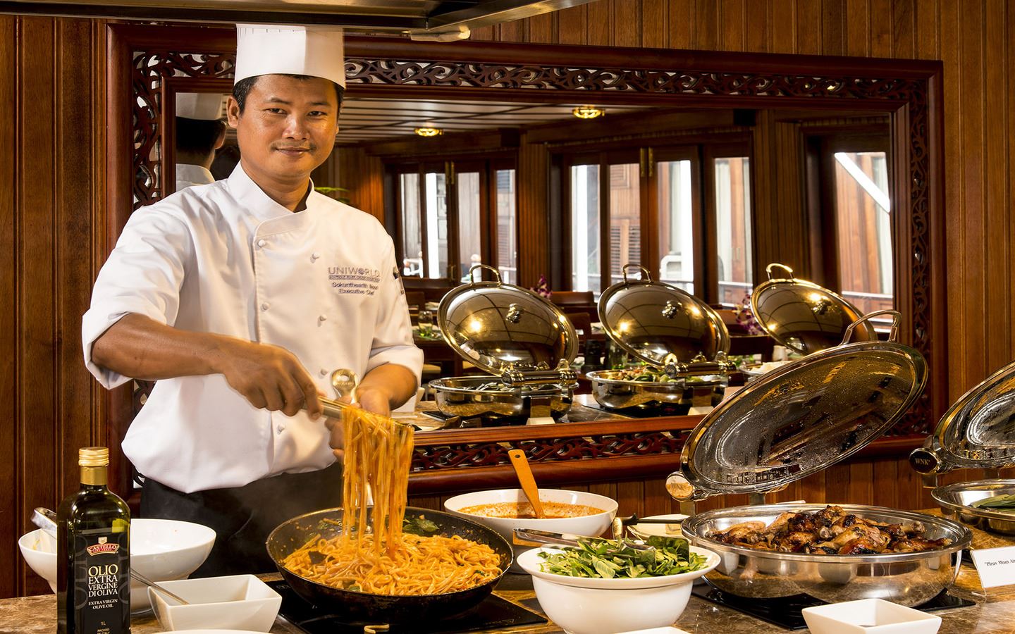 This evening, savour a delicious welcome dinner on board as the serene Cambodian countryside drifts by, and the mighty Mekong River beckons us onward on our journey through the heart of Indochina.